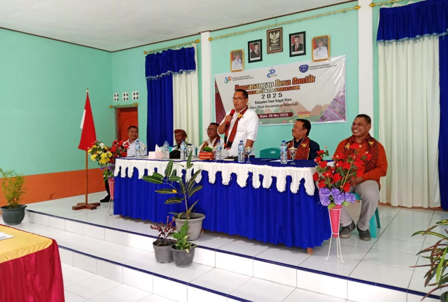 KEFAMENANU NEWS,- Mewakili Bupati TTU, Yosep Falentinus Delasalle Kebo, S.IP, MA, Asisten Sekda Bidang Pemerintahan Bidang Pemerintahan dan Kesra Setda TTU, Drs Yoseph Kuabib menghadiri kegiatan pencanangan Desa Cinta Statistik (Cantik) yang digelar berkat kerjasama Dinas Kominfotik TTU dengan Badan Pusat Statistik (BPS) Kabupaten TTU di Desa Bijeli, Kecamatan Noemuti, Kabupaten TTU, Rabu (28/5/2025).